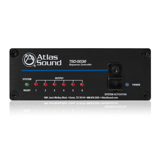 ATLAS SOUNDControlador (PZA) Controlador de secuencia de CA El controlador secuenciador AtlasIED TSD-SEQ6 cuenta con 6 salidas que se pueden configurar in...