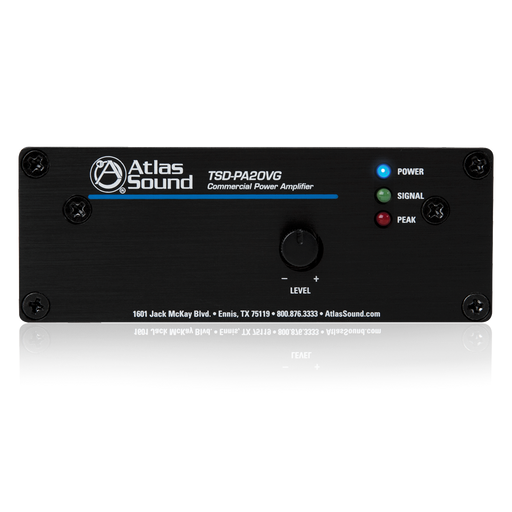ATLAS SOUNDAmplificador (PZA) Amplificador de potencia mono de 20 W, 4 Ω/25 V/70,7 V/100 V. El TSD-PA20VG es un amplificador mono rentable para sistem...