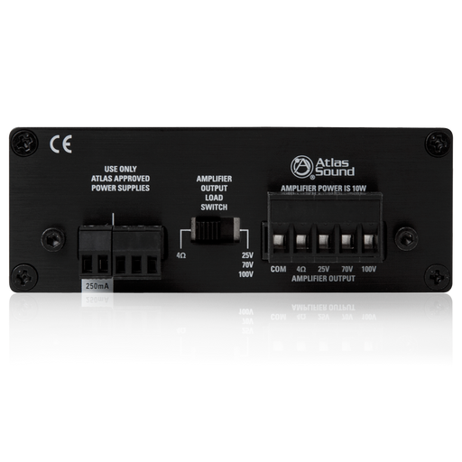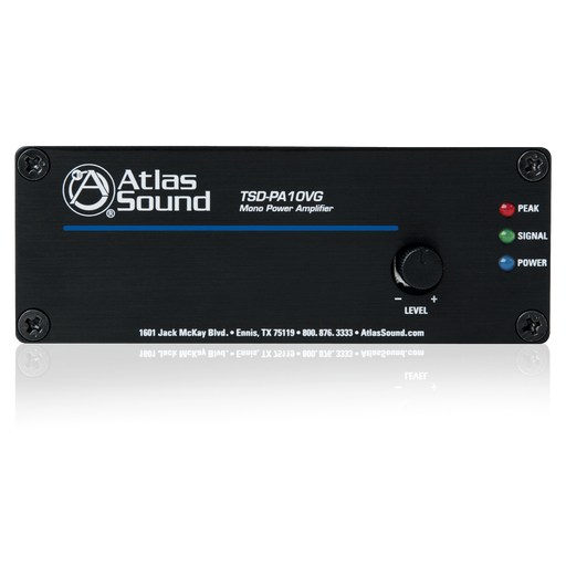 ATLAS SOUNDAmplificador (PZA) Amplificador de potencia mono de 10 W, 4 Ω/25 V/70,7 V/100 V. El TSD-PA10VG es un amplificador mono rentable para siste...
