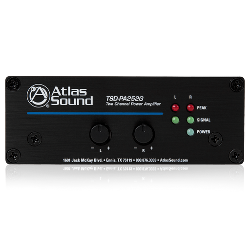 ATLAS SOUNDAmplificador (PZA) Amplificador de potencia de dos canales de 25 W x 2 @ 4 Ω El TSD-PA252G es un amplificador estéreo de 4 Ω confiable y re...