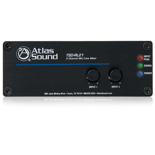 ATLAS SOUNDMezclador de micrófono (PZA) Mezclador de dos canales El versátil mezclador de micrófono/línea 2x1 AtlasIED TSD-RL21 es ideal para aplicacion...