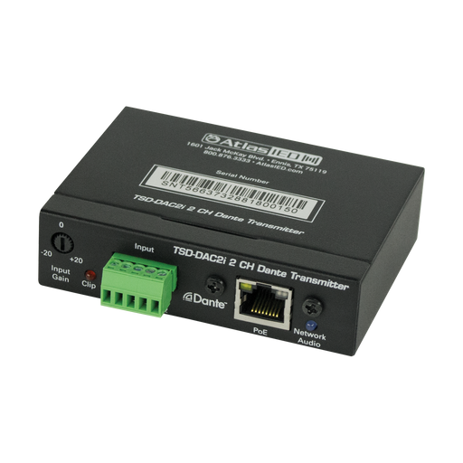 ATLAS SOUNDAmplificador (PZA) Entrada de línea de equilibrio de 2 canales a la interfaz Dante® El AtlasIED TSD-DAC2i es un preamplificador analógic...