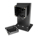 La construcción está hecha de materiales de aluminio y acabada con una capa de polvo negro texturizado y resistente a la intemperie. Una caja de conexiones resistente a la intemperie con un orificio de acceso para el cableado interno al(los) altavoz(s), permite su instalación en instalaciones exteriores permanentes, mientras que el guiado de cables por toda su estructura da como resultado un resultado final muy elegante.