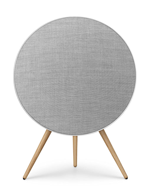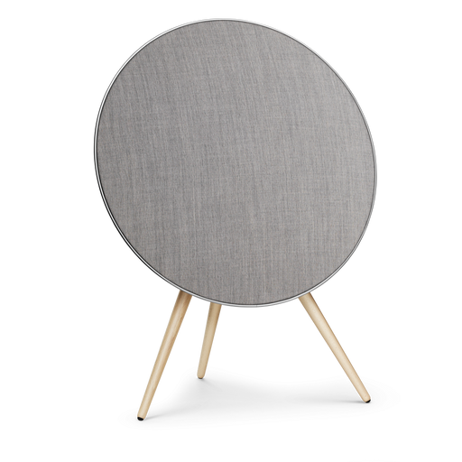 BeoPlay A9 5th gen Natural Aluminum / Grey Mist back / Light grey Kvadrat cover / Oak legs