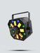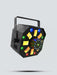 Luz LED 4 en 1 que combina un derby giratorio RGBAW, wash RGB+UV, láser rojo/verde y un anillo de luces estroboscópicas SMD blancas