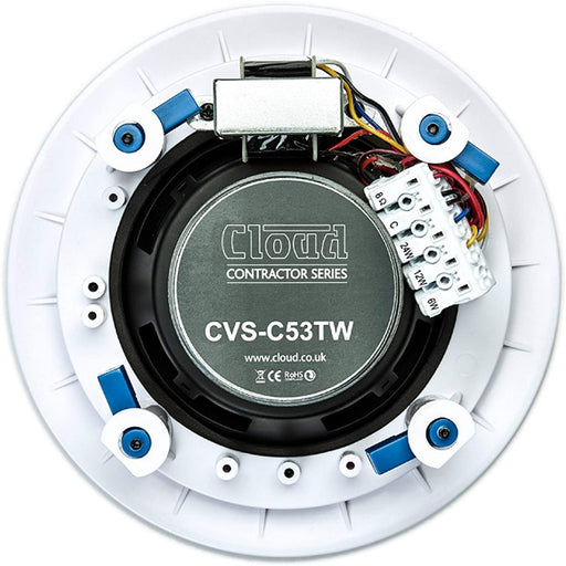CLOUDAltavoces de techo CVS-C53TW (PZA) Altavoz de techo de 5¼”, coaxial de 2 vías con respaldo abierto de 8 ohmios, máx. 40 W o 100 V - 24 W, 12 W, 6 ...