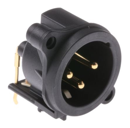 NC3MRX-B 3 POLE RIGHT ANGLE MALE CABLE CONNECTOR, BLACK METAL HOUSING, GOLD CONTACTS. 1 PZA. MORE SPECS