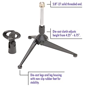 ON STAGE STANDSNuestro soporte de micrófono de escritorio con trípode DS7425 liviano es ideal para podcasting y otras aplicaciones de micrófono de escritorio móvi...