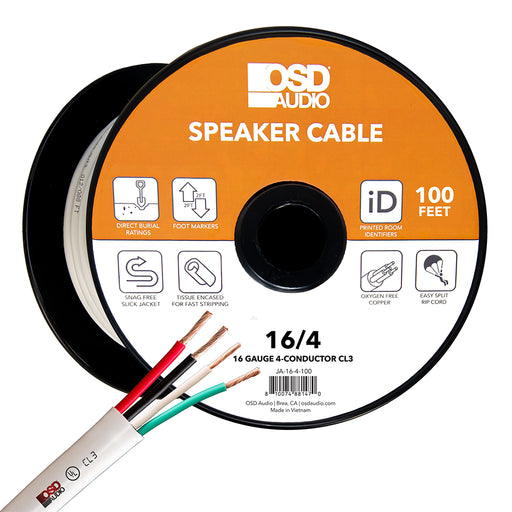 OSD AUDIOCable 16-4-100 (100ft) Longitud del cable de altavoz de 4 conductores, calibre 16, 100 pies Diseñado para instalaciones comerciales y residenciales...