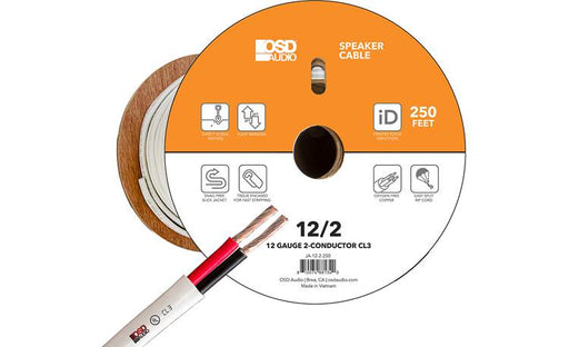 OSD AUDIOCable 12-2-250 (250ft) Longitud del cable de altavoz de 2 conductores de calibre 12 de 250 pies Diseñado para grandes instalaciones comerciales y r...