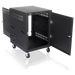 El estante para equipos móviles de 14RU y 30 pulgadas de profundidad incluye: ruedas, manijas laterales y puertas sólidas.