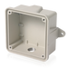 La caja posterior exterior de montaje en superficie proporciona una instalación resistente a la intemperie para los altavoces de la serie VT. La unidad tiene rosca para conducto de 1/2" e incluye una junta resistente a la intemperie. Dimensiones: 4 1/4" SQ x 2" D (108 x 51 mm). El peso es 0,75 lbs (0,35 kg). La carcasa es de zinc fundido a presión. acabado en un epoxi gris neutro duradero.