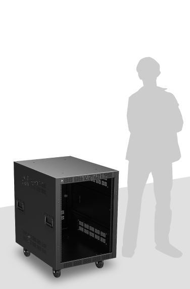 ATLAS SOUNDGabinete (PZA) El estante para equipos móviles de 25 pulgadas de profundidad y 14RU incluye: ruedas, manijas laterales y puertas sólidas. El gabine...