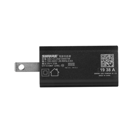 SHURESBC10-USB-A(PZA) Cargador USB de pared de 15 cm para transmisores inalámbricos Microflex y otros dispositivos. ...