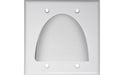 When you're installing a home theater or commercial sound system and want to run multiple cables through a wall, this feed-through wall plate is ideal. This cable pass-through wall plate is designed for HDMI, VGA, fiber optic, component, and RCA audio cables that are routed through the wall and already terminated. A pass-through wall plate is also useful when you have many cables in one place that makes wall plate termination impractical. The hole diameter is approximately 2 inches and the wires are at a 90 degree angle. With this design, you can place equipment close to the wall. ABS plastic rigid plates are standard double size. Matching screws are included.