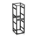 The base includes four 3/8"-16 threaded bushings to accept leg levelers (LL-1 models) and four 11 gauge CRS corner braces drilled to accept casters. The base also has provisions for permanently attaching it to the floor. Ships with two pairs of 11 gauge CRS adjustable mounting rails. The frame rails are precision 10-32 threaded and recessed 1 3/16" (30 mm). These plated rails include convenient RU indicator marks to aid in equipment alignment. Rails have standard EIA spacing of 5/8"-5/8"-1/2".