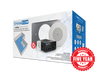 Complete corporate public address and music system for ceiling panel applications, with level and source wall controller and self-diagnostics