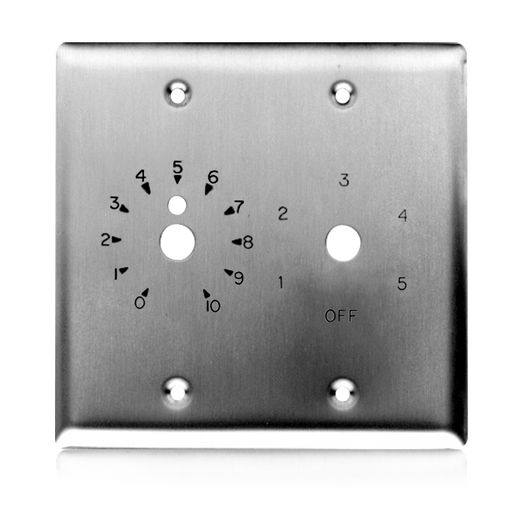 ATLAS SOUNDSphere scale (PZA) Double gang stainless steel plate with dial scale for dimmer and 6-position rotary switch ...