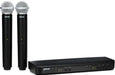 The Shure BLX288/SM58 Dual Vocal Wireless System combines professional-quality sound with simple setup and up to 14 hours of battery life for legendary audio performance for two vocalists right out of the box. The system includes a BLX88 dual-channel table receiver, two legendary SM58 handheld transmitters, two microphone clips, a power supply, two AA batteries, and a user manual.