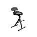 Height-adjustable stool with foot and backrest. Ergonomically shaped seat with adjustable height and tilt angle. Height and depth adjustable backrest. Footrest with continuously variable height adjustment. Solid steel construction. Conveniently folds. Vari-Foot® technology to level uneven floors. Leatherette seat. GFMBR1 backrest included. More features