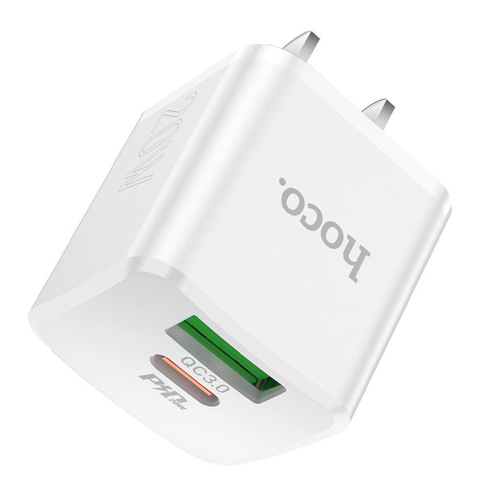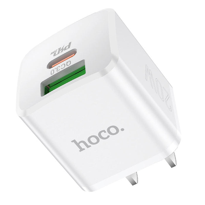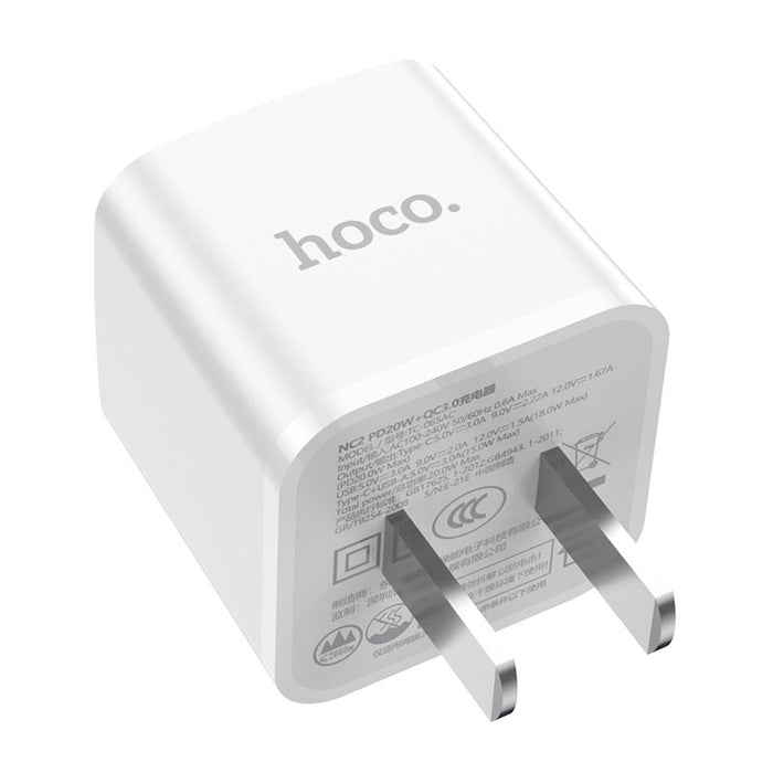 NC2 Meridian, cargador de pared, salida Type-C PD 20W y USB-A 18W, conector CN, compatible con protocolos de carga rápida, conjunto con cable para Type-C a Lightning.