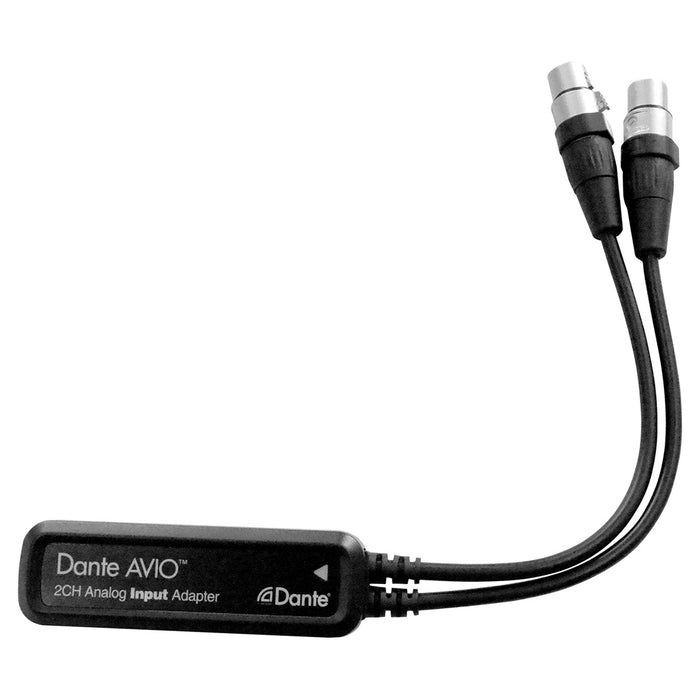 Adaptador para Dante, 2 canales analógicos de entrada, conectores XLR de alta calidad, Plug & Play, fabricado para uso rudo, frecuencias de muestreo de hasta 96 kHz, soporte de audio de 16, 24 y 32 bits, excelente rango dinámico, rendimiento de SNR y THD, ganancia / atenuación configurable, Dante Audio sobre IP y formatos de transporte AES67 RTP, soporte de alimentación a través de Ethernet (PoE), Dante Domain Manager listo.