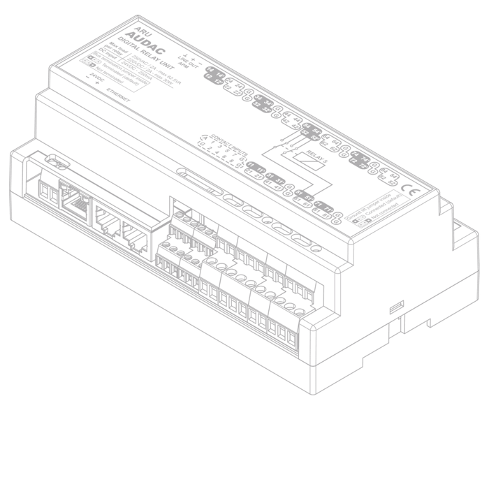 También se proporcionan contactos normalmente abiertos y normalmente cerrados. Se puede conmutar una amplia variedad de señales, que van desde señales de audio de nivel de línea hasta señales de altavoces amplificados (baja impedancia o 100 V) y distribución de voltaje (voltaje bajo hasta distribución de voltaje de red de 240 V CA). Posibilidad de disparo de relés a través de entradas de contacto seco, que pueden utilizarse para disparo de relés a través de dispositivos externos o actuadores. Prioridad de los contactos secos sobre las funciones/disparadores digitales. Las aplicaciones típicas son activaciones mediante botones externos, interruptores o contactos de alarma. Gracias a su naturaleza modular, el ARU204 es perfectamente adecuado para pequeñas aplicaciones domésticas o minoristas, así como para grandes instalaciones.