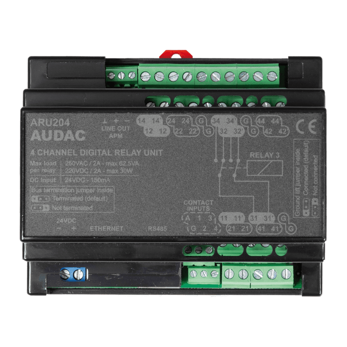 Está especialmente diseñado teniendo en cuenta la flexibilidad y la funcionalidad. Se proporcionan varias formas de conmutar los 4 relés, que incluyen la interfaz web integrada, las consolas de megafonía opcionales y la activación por contacto analógico, lo que convierte al ARU204 AUDAC en los módulos de relé más inteligentes e innovadores. Con este ingenioso dispositivo, se pueden obtener cambios entre fuentes de audio, enrutamiento de señales e incluso configuraciones de automatización personalizadas. Los relés bipolares permiten conmutar señales mono balanceadas y señales estéreo no balanceadas.