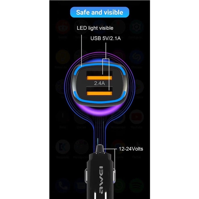 Cargador de coche inteligente AWEI C-827 / Carga rápida Auto Intelligente 2.4A / Salida dual - Vehículo