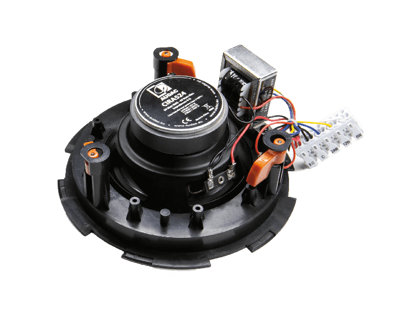 El CIRA5 cuenta con un controlador de 5 ¼” que usa material de cono de polipropileno, combinado con un tweeter Mylar de 1” equipado con un conector de fase para un excelente rendimiento fuera del eje. Los materiales seleccionados garantizan un rendimiento de baja distorsión con una respuesta de frecuencia suave y plana. Se logra un manejo de potencia continua de 30 Watt (RMS) y un manejo de potencia máxima de 60 Watt, mientras está equipado con un transformador de línea de 100 V de tomas múltiples con tomas para 24 W, 12 W, 6 W, 3 W.