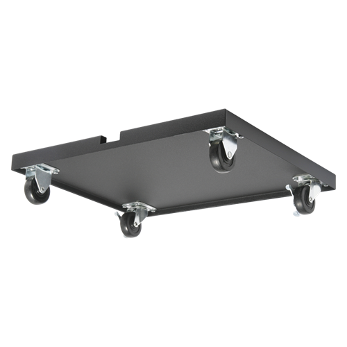 El carro con ruedas CRS soldado de calibre 16, de alta resistencia, proporciona movilidad para gabinetes de 19" de ancho x 18 1/2" de profundidad. La unidad está diseñada para uso en una sola bahía y tiene un par de ruedas giratorias rígidas y un par con bloqueo de 3".