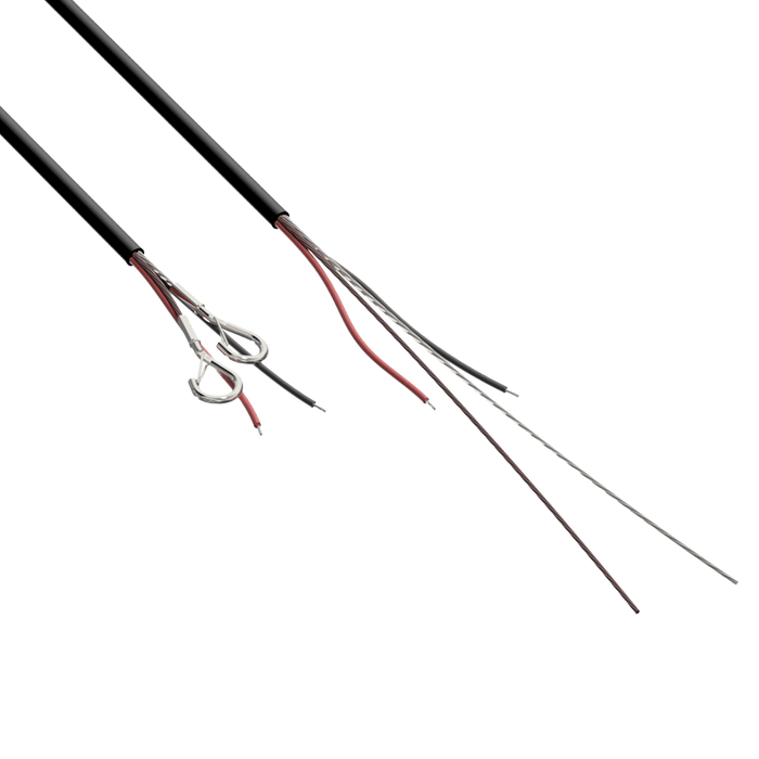 Un cable de conexión con conductores y un cable de suspensión y seguridad de acero en una sola cubierta exterior. Esto ofrece la solución más limpia y elegante para conectar y montar el altavoz. Este cable de conexión profesional con dos núcleos de acero integrados para suspender añade una seguridad adicional contra caídas para el altavoz. La fijación se realiza a través de dos ganchos de seguridad en un extremo y una fijación doble Gripple™ en el otro extremo.