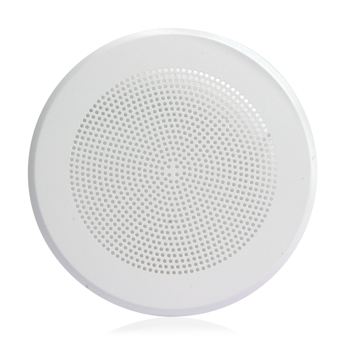 Los orificios de 1/8" de diámetro de la rejilla están igualmente espaciados, formando un patrón de perforación que permite una transmisión de sonido de alta calidad.