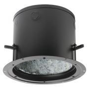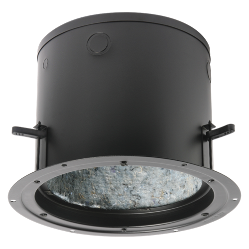 frontalmente Serie de estrategia de AtlasIED de 8" de diámetro. Modelos de altavoz FA138 y FA118. Este método de montaje directo del altavoz al gabinete elimina todos los requisitos de soporte de carga de la rejilla, lo que permite el uso de pernos soldados para una instalación conveniente de la rejilla a presión, una característica que ahorra tiempo y presenta una apariencia limpia y sin hardware. También facilita la extracción rápida y sencilla de la rejilla para pintar u otro tipo de mantenimiento.