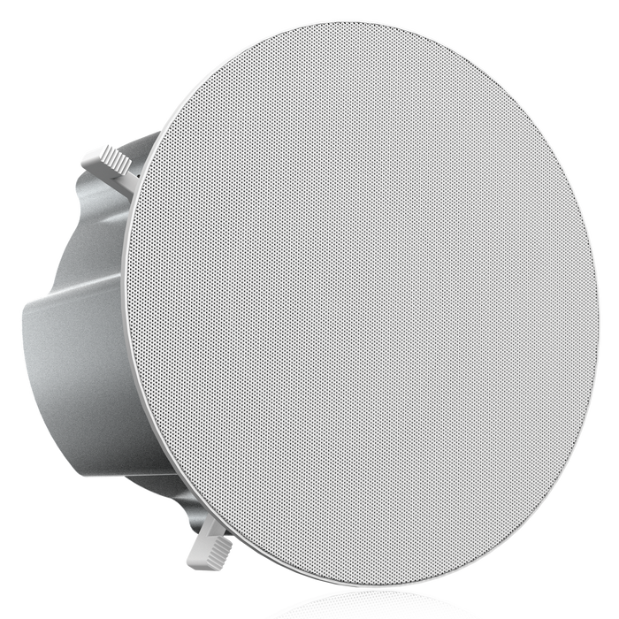 La construcción de alta calidad incluye un woofer compuesto de papel de alta eficiencia con borde de goma y un tweeter de cúpula de seda montado coaxialmente de 20 mm. La alta sensibilidad del altavoz significa que es posible que se requiera menos energía para lograr el SPL deseado. Los altavoces se ensamblan de fábrica en una carcasa embutida con puertos y sintonización óptima e incluyen un transformador de baja saturación de 70,7 V/100 V especialmente diseñado. Un práctico interruptor montado en el frente permite seleccionar el grifo sin necesidad de quitar el altavoz del techo. Un conector desmontable de cuatro polos estilo Phoenix con bloqueo proporciona un fácil cableado en cadena a otros altavoces o subwoofers de rango completo. La atractiva rejilla encajable a presión de perfil bajo se integra perfectamente en la arquitectura contemporánea.