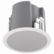 Altavoz coaxial de techo de 6.5" con transformador de 32 vatios 70 V/100 V, gabinete con puerto, sistema de montaje Safety First y rejilla cuadrada blanca sin bordes
