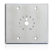 Placa de acero inoxidable de doble salida; Escala de dial estampada y llena de pintura Orificio de montaje central de 3/8 ", monta caja EO estándar; con hardware