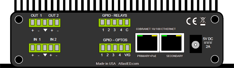 Módulo de E/S de audio CobraNet 2x2 con lógica y relés