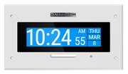 Mientras está en espera, el IP-DMF muestra la hora con fecha y elimina la necesidad de un sistema de reloj maestro separado al utilizar el protocolo de tiempo de red (NTP) para mantenerse actualizado. Cuando está activa, la pantalla IP-DMF cambia de vez en cuando a notificaciones visuales al desplazar el contenido de texto sobre la pantalla LCD de alta resolución.