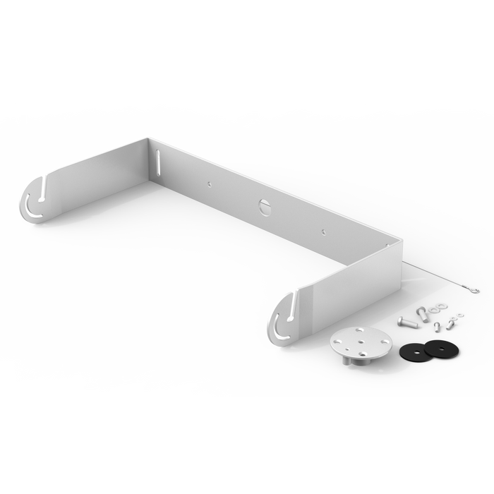 Para la instalación de estos soportes, el adaptador de brida para poste en la parte inferior del altavoz debe reemplazarse por un adaptador de brida con tornillo, que se incluye con estos soportes opcionales. Están construidos en acero sólido y vienen con todas las piezas necesarias para un montaje seguro. Este soporte también está disponible en blanco.
