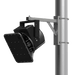 El brazo de soporte está soldado para mayor resistencia y durabilidad. Cada brazo incluye tres orificios de montaje para puntos de fijación en el extremo del brazo que permiten al instalador seleccionar la distancia deseada entre el altavoz y el poste.