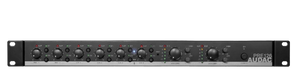 El control del volumen de entrada se realiza mediante los diales giratorios correspondientes en el panel frontal, mientras que los ajustes de enrutamiento se realizan a través de los botones de selección de zona. Cada sección de salida cuenta con una barra VU LED de 6 segmentos, un control de volumen maestro y un control de tono de 2 bandas. Las conexiones y configuraciones de entrada o salida, como ajuste de ganancia y conmutación mono/estéreo, se pueden realizar a través de los controles proporcionados en la parte posterior del dispositivo.