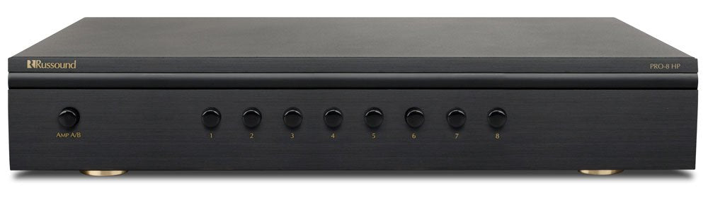 Un interruptor A/B en el panel frontal le permite alimentar todos sus altavoces con cualquiera de los dos amplificadores de fuente. El PRO-8HP está diseñado para usarse con altavoces de 4 u 8 ohmios.