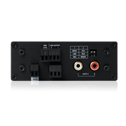 El canal uno se puede configurar a través del interruptor DIP del panel trasero para acomodar el nivel de línea o micrófono, mientras que el canal dos cuenta con una entrada de nivel de línea RCA de suma estéreo. Ambas entradas son ajustables mediante controles en el panel frontal con perillas extraíbles, que pueden ser fácilmente reemplazadas por cubiertas de seguridad para evitar manipulaciones. La función de control de nivel remoto permite el uso del control de placa de pared decorativa AtlasIED AAVC-10K (o equivalente) para un ajuste remoto conveniente de todo el bus de mezcla o solo de la entrada RCA 2 (la entrada BGM típica).