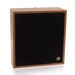 Este paquete de altavoz/deflector cuenta con un deflector/caja de pared de color nogal con una atractiva rejilla de tela negra.