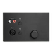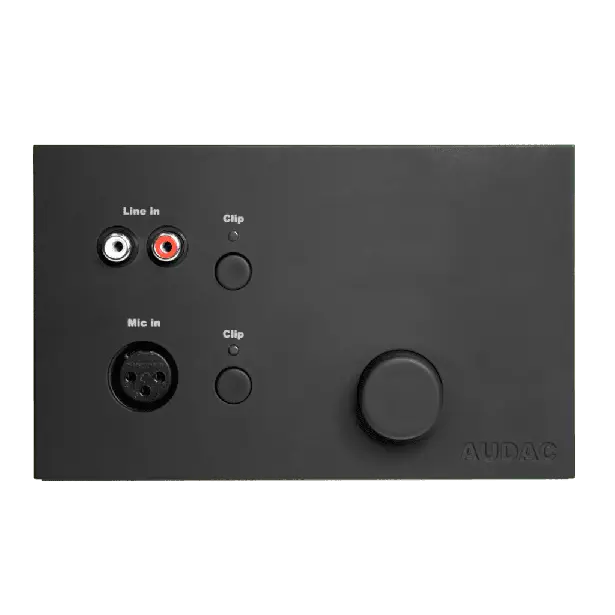 En la parte frontal del panel de pared hay disponible una entrada de línea RCA estéreo junto con una entrada de micrófono XLR balanceada, ambas provistas de su propio mando que permite mezclar las señales. Un dial de volumen principal le permite ajustar el volumen general del sistema de altavoces.