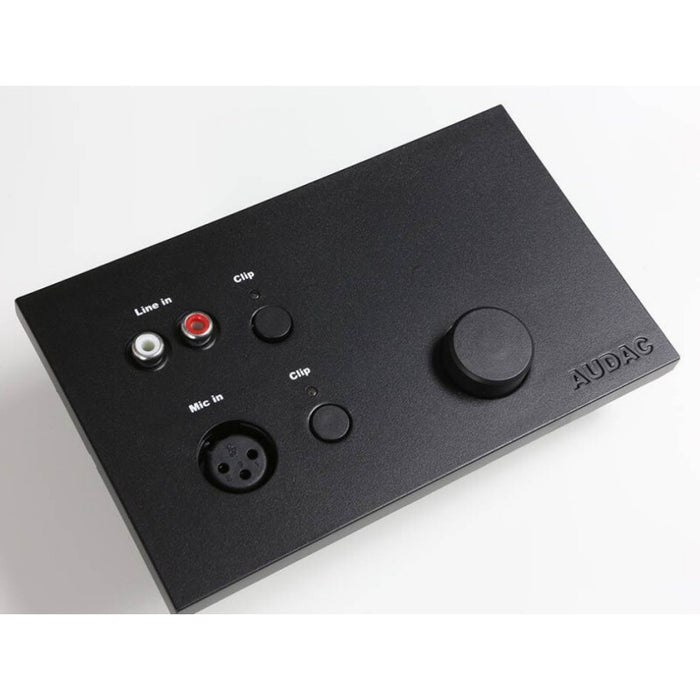 Los potenciómetros de mezcla están al nivel de la superficie y ambos equipados con un mecanismo Push-Lock. Se pueden abrir y ocultar nuevamente presionándolo. Un limitador interno evita la distorsión en la señal de entrada e interviene cuando el nivel de la señal de entrada alcanza el nivel de recorte. El LED 'Clip' ubicado encima del potenciómetro de mezcla se iluminará cuando se recomiende reducir el nivel. Esto debe hacerse girando hacia atrás el potenciómetro. Un puente en la parte posterior del panel le permite habilitar la alimentación fantasma de 12 V para la entrada del micrófono. La conexión del panel de pared debe realizarse con cableado UTP CAT5 de par trenzado pudiendo alcanzar distancias de hasta 500 metros. Debe conectarse al conector del bloque de terminales europeo de 8 pines en la parte posterior del panel.
